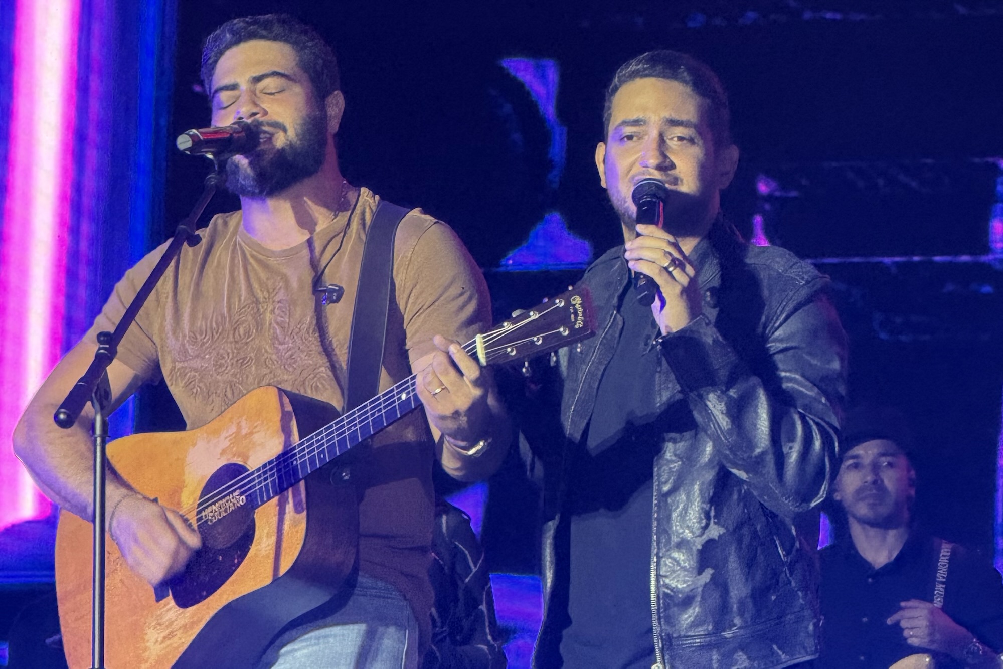 Quando Henrique & Juliano subiram ao palco, o estádio se transformou em um mar de vozes, foi lindo de ver e arrepiante! Com um repertório repleto de sucessos que marcaram a carreira e emocionaram gerações, os irmãos conduziram uma apresentação intensa, mesclando romantismo, energia e momentos de pura nostalgia.