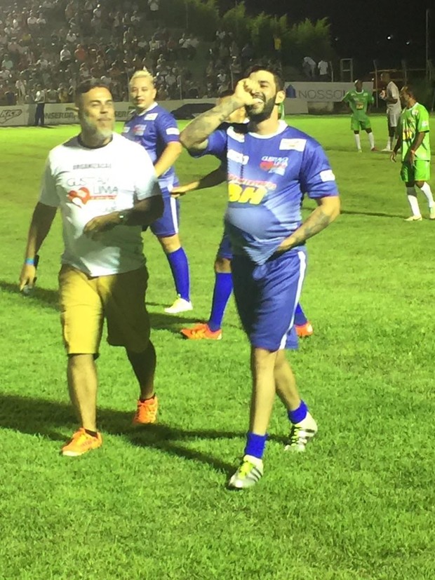 O jogo contou com presença dos famosos Caio Castro, Thiavo Brava, Marrone, Israel Novaes, Felipe Araújo, arcelinho Carioca, Edilson Capetinha, Edmilson (estrelas do futebol) entre outros. Intitulado “Gusttavo Lima e Amigos Contra a Fome”, o evento foi aberto ao publico no Estádio Bernardo Rubinger de Queiroz (Campo do Mamoré). O evento contou com 12 mil pessoas presentes no estádio (completamente lotado) e arrecadou 35 toneladas de alimentos, que serão doadas para instituições beneficentes.
